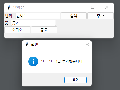messagebox.showinfo('확인', f'단어 {key}를 추가했습니다')