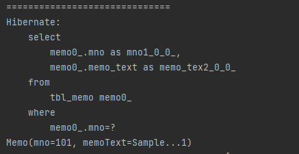 System.out.println(memo);//실제 객체를 사용하는 순간에 SQL이 동작한다.