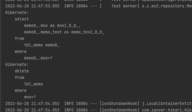 * 호출결과를 보면 내부적으로 select 쿼리로 해당 번호의 Memo 객체를 확인하고