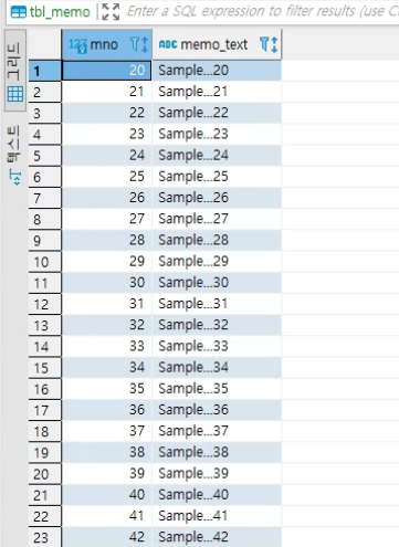 List<Memo> list = memoRepository.findByMnoBetweenOrderByMnoDesc(70L, 80L);