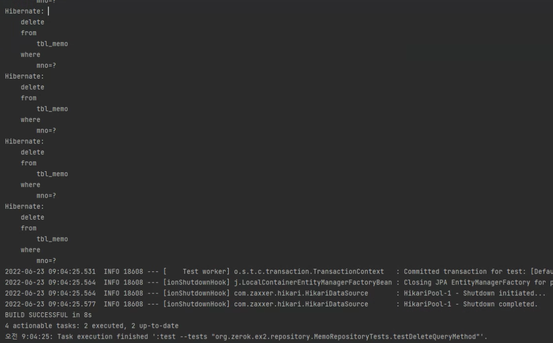 memoRepository.deleteMemoByMnoLessThan(10L); //10번 전까지의 데이터를 삭제