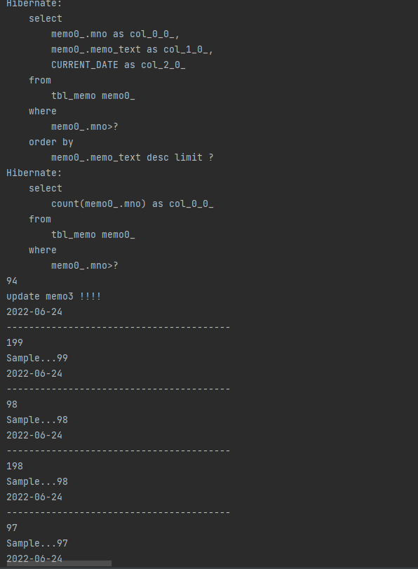 memoRepository.getListDesc(); //@Query("select m from Memo m order by m.mno desc") List<Memo> getListDesc();
