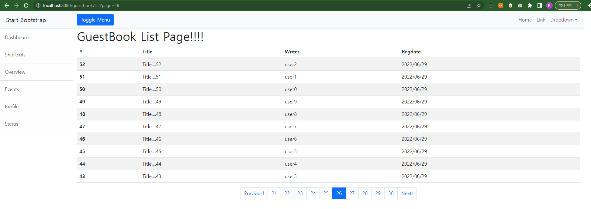 guestbook : 06. 목록처리(3) 컨트롤러와 화면에서의 목록처리 본문