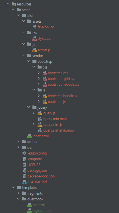 따라서 카페에서 받은 파일의 압축을 풀고 새로운 프로젝트로 불러들였다. 그러고는 static 폴더 밑에 필요한 파일과 폴더를 기존 프로젝트에 복사해 넣었다. 사실 복사해 붙여넣지 않아도 큰 문제는 없다. 다만 나는 내가 처음부터 진행하던 프로젝트를 계속해서 진행하고 싶었다.