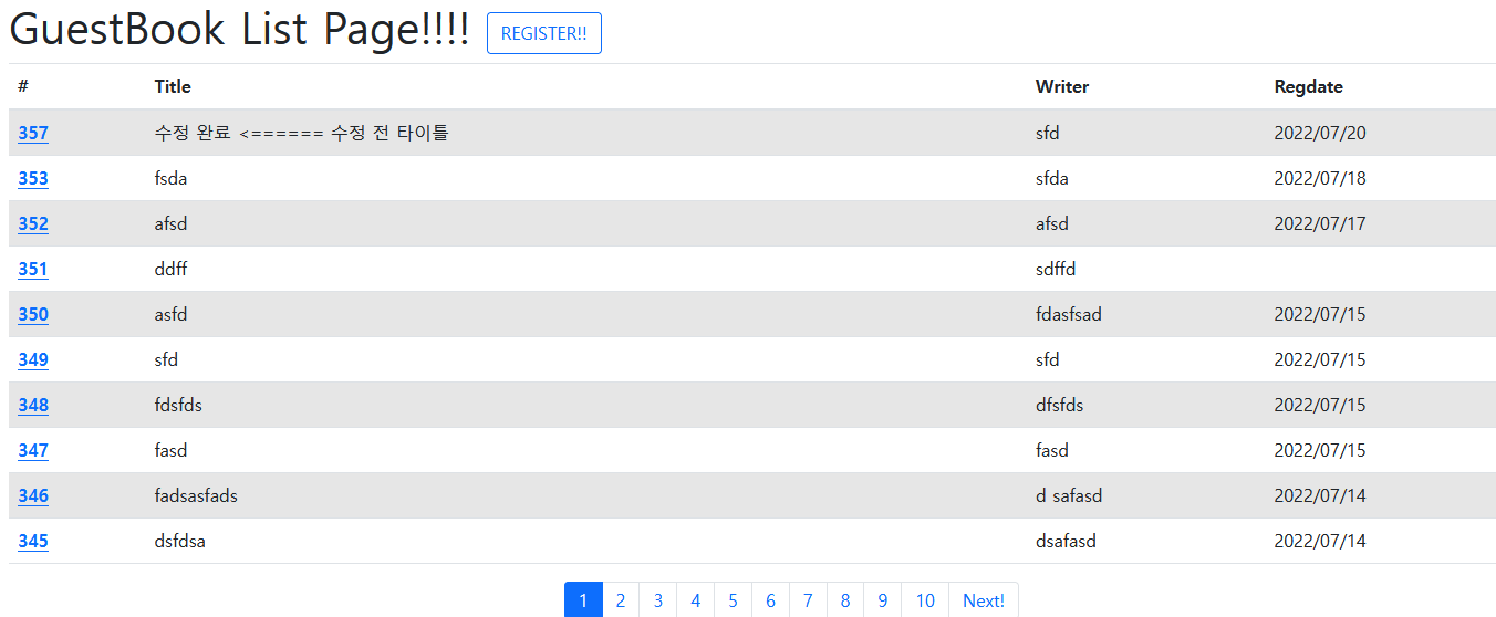 - 따라서 목록으로 이동하는 경우 page를 제외한 파라미터들은 제거한 상태로 처리하는 것이 깔끔하다.