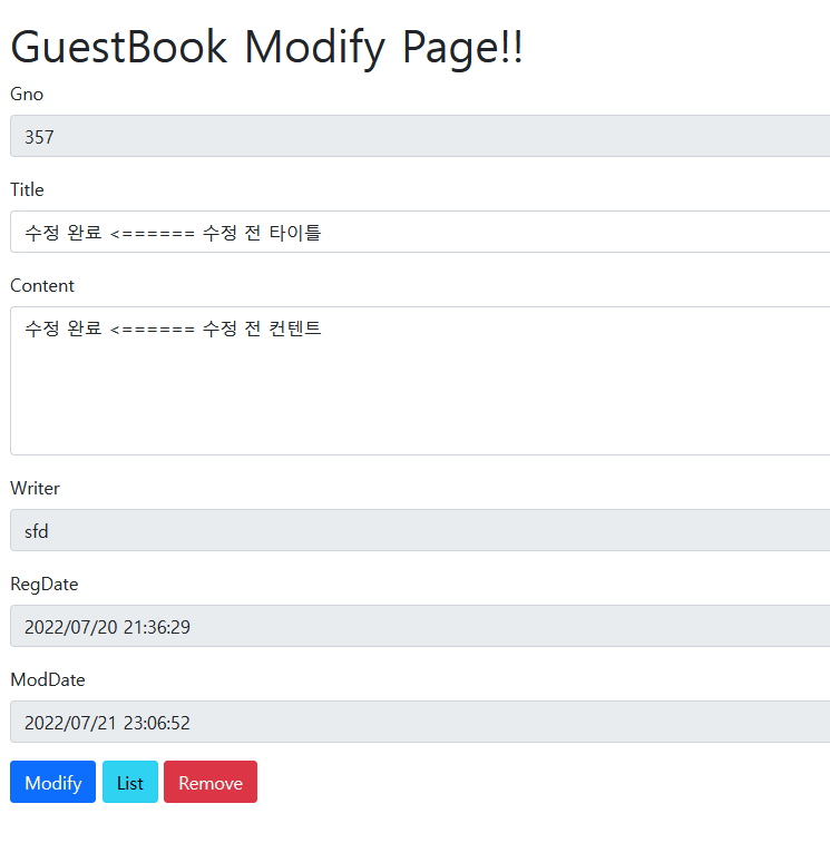 <h1 class="mt-4">GuestBook Modify Page!!</h1> <!-- 제목 변경 -->