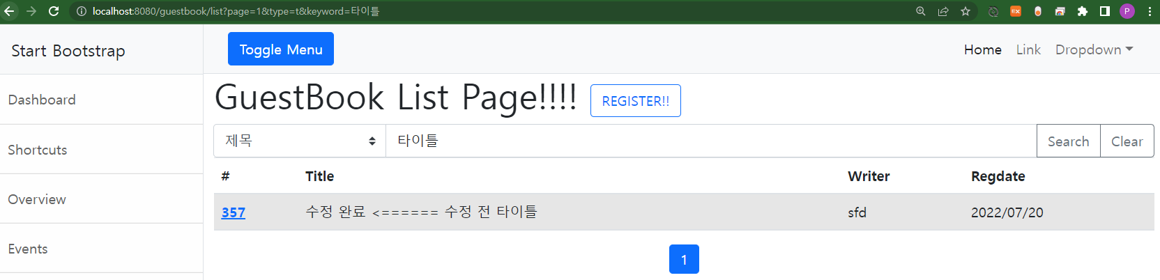 예) localhost:8080//guestbook/list?page=1&type=t&keyword=11