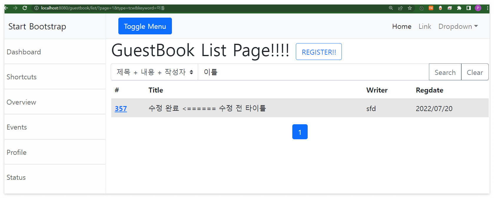 http://localhost:8080/guestbook/list?page=1&type=t&keyword=타이틀