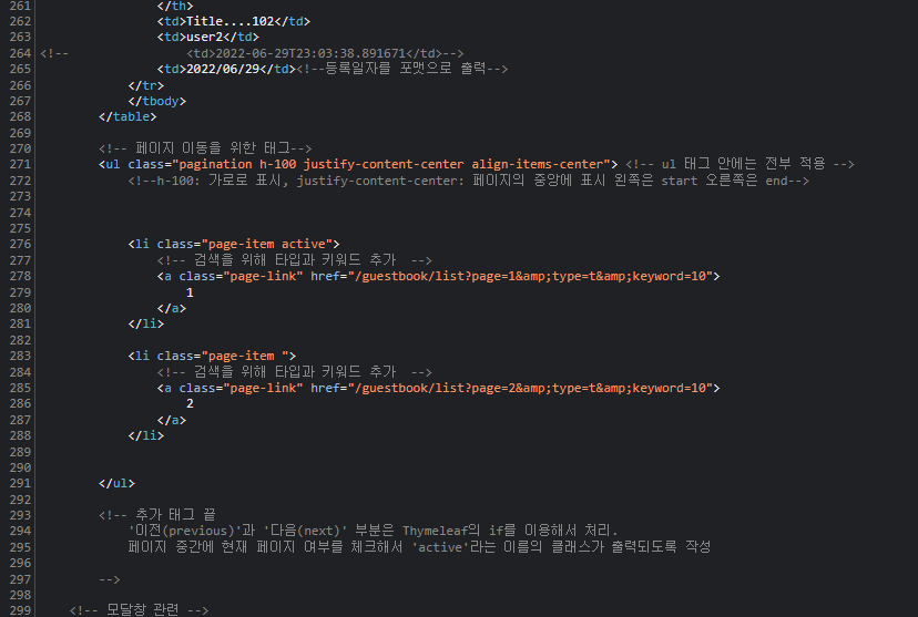 - 이는 페이지 처리와 동일하게 type과 keyword 항목을 추가하면 된다.