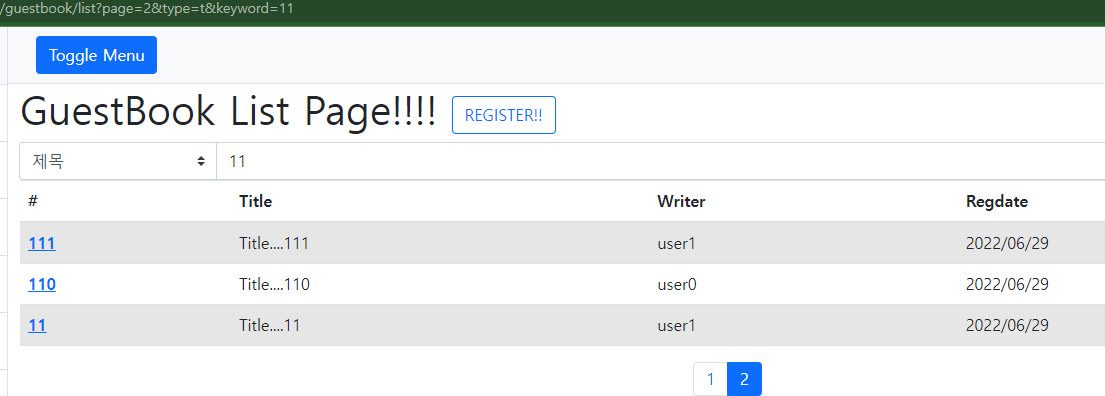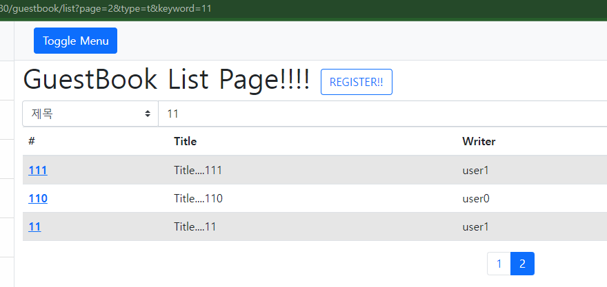 - 목록 페이지에서 특정 조건으로 검색 수행