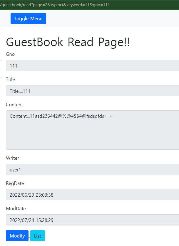 <h1 class="mt-4">GuestBook Read Page!!</h1>