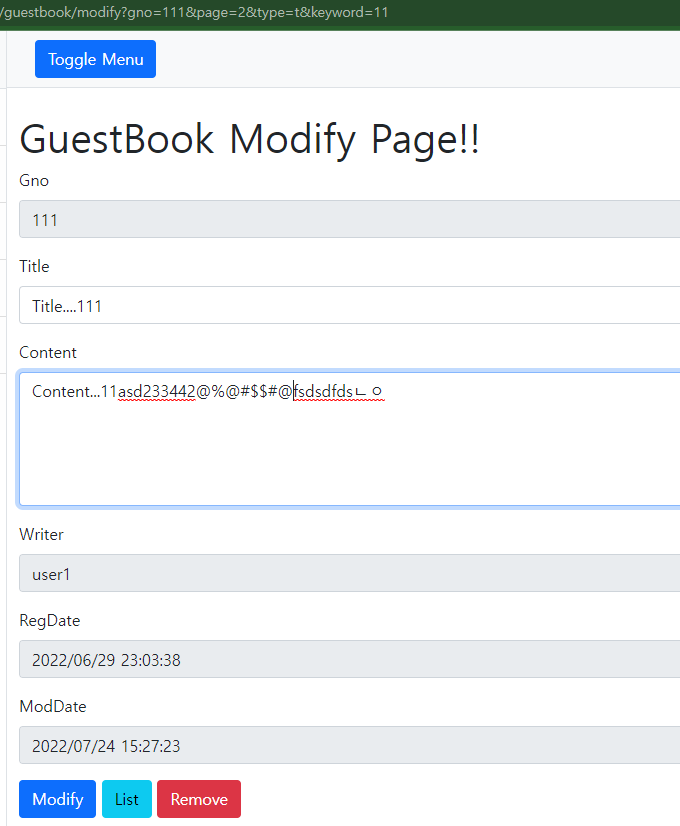 이 가운데 수정은 수정을 완료하고 다시 조회 페이지로 돌아오는 편이 좋다.