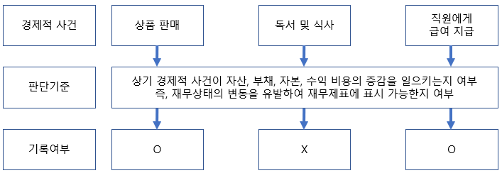 사건_판단.append((사건2, False)) # 독서 및 식사는 재무상태의 변동을 이르키지 않는다.