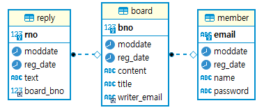 - DB구조로 보면 앞으로 생성될 board 테이블과 member테이블에는 FK를 이용한 참조가 걸려있게 된다.