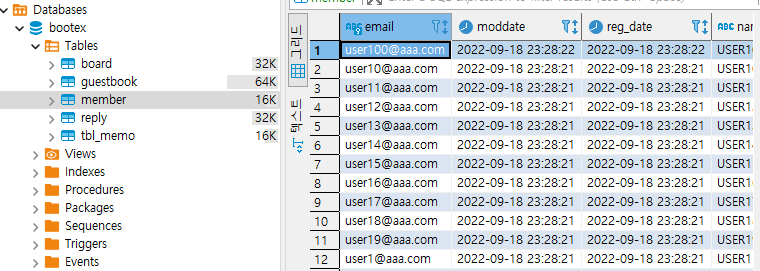 현재 3개의 테이블이 PK와 FK의 관계로 이루어져 있다. 따라서 테스트를 위한 데이터를 추가하는 작업도 PK 쪽에서부터 시작하는 것이 좋다.