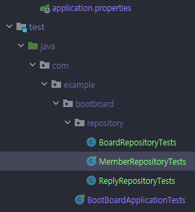 BoardRepositoryTests 코드 역시 동일한 패키지에 추가한다.