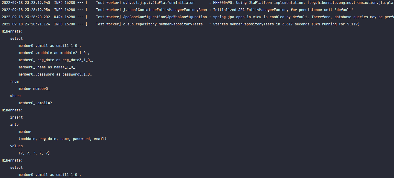 앞에서 만들어진 member테이블을 이용해서 Board객체를 생성해서 추가하는 테스트 코드를 작성한다.