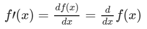 | $f\prime(x) = \frac{df(x)}{dx}=\frac{d}{dx}f(x)$ | ![]() |