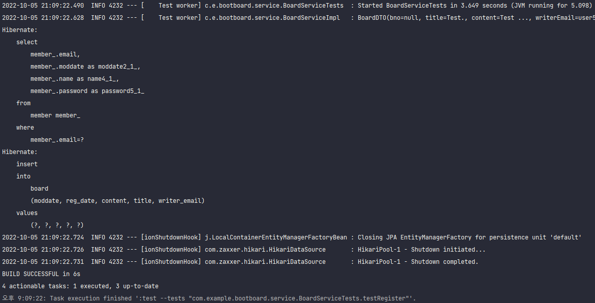 - DTO가 연관관계를 가진 Board 엔티티 객체와 Member 엔티티 객체를 구성해야 한다.