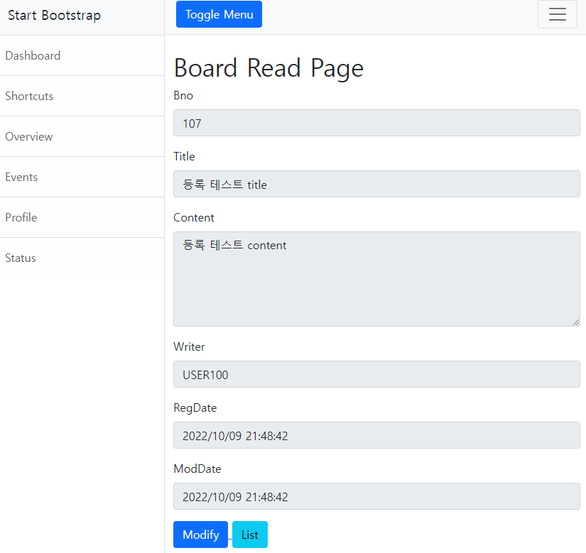 2. 게시글 조회를 위한 페이지 생성read.html