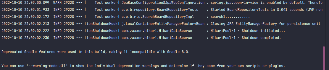해당 메서드를 호출했을 때 로그가 찍히는 것을 확인하였으니 다음에는 여기에 실제 JPQL을 작성할 것