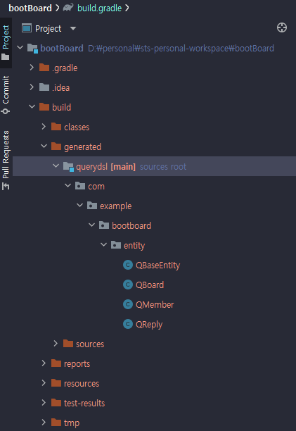 bootBoard 프로젝트의 경우 지금까지는 Querydsl 설정이 없는 상태에서 작성되었다. 따라서 build.gradle에 Querydsl 설정을 추가해주는 작업부터 시작한다.