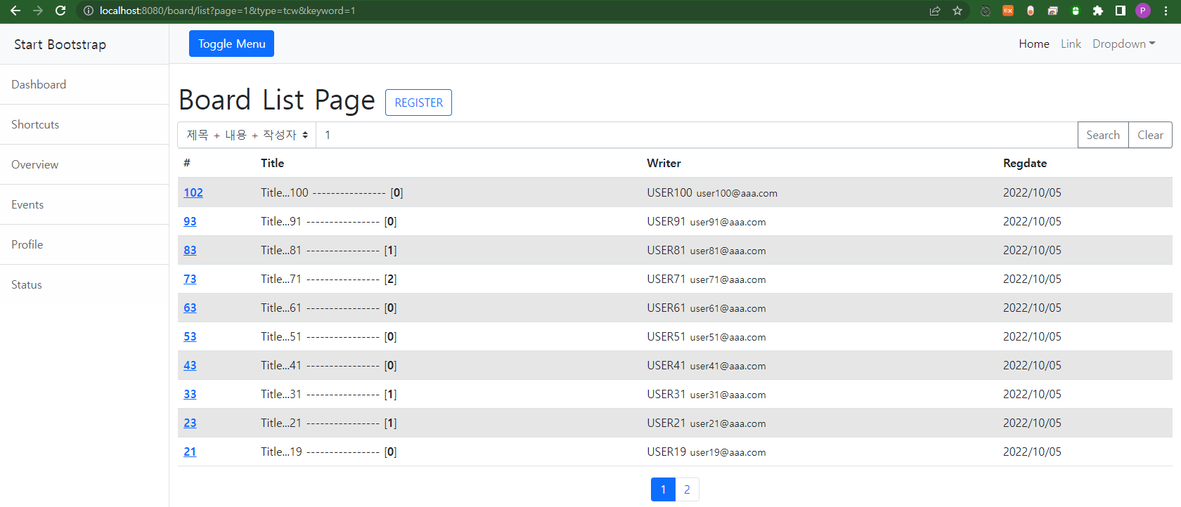 [bootBoard] N:1(다대일) 연관관계: 11-7. 목록화면에서 검색 처리 본문