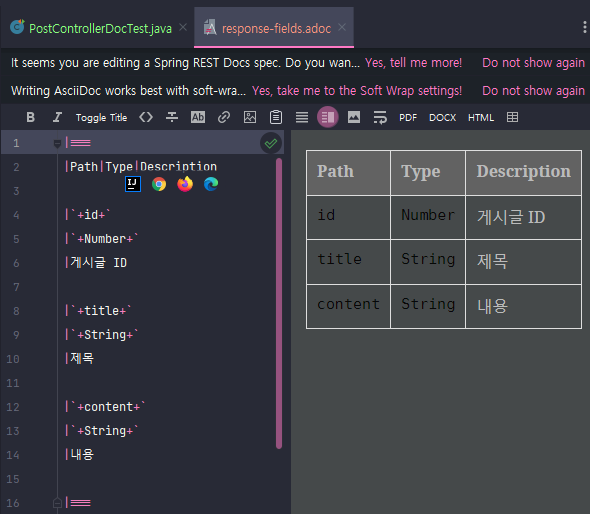 테스트 성공하면 request-fields.adoc이 생성된다.