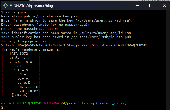 c/Users/user/.ssh/id_rsa 밑에 파일 생성됨.