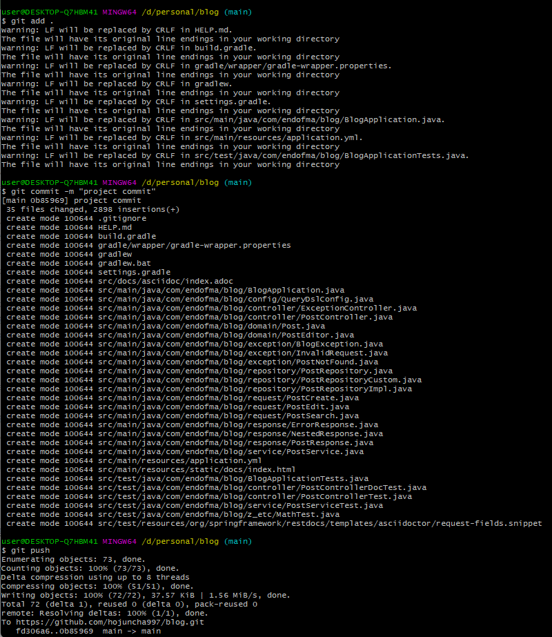 echo "# blog" >> README.md //해당 디렉토리에 README.md 파일 생성
