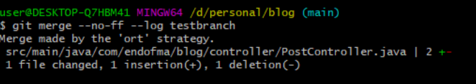 git merge --no-ff --log mybranch 입력하면