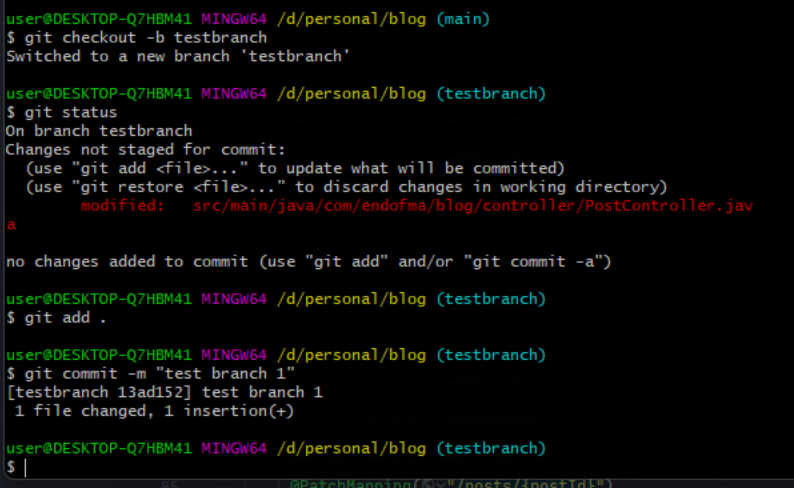 1. testbranch라는 브랜치를 만들었다.