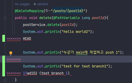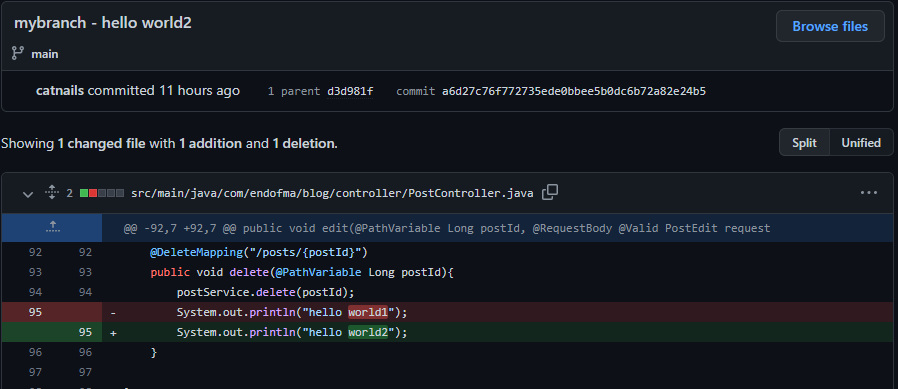 2. 소스 코드에 변경사항을 발생시켰다.(PostController.java)