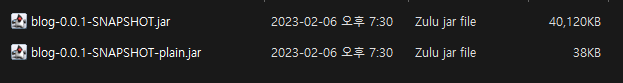 - bootjar파일 (애플리케이션으로 띄울 수 있는 jar 파일이다. 빌드에 필요한 라이브러리가 포함돼 있다.)