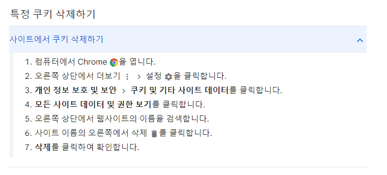 그 동안 한 번도 쿠키 삭제를 하지 않았기 때문에 납득하였다.