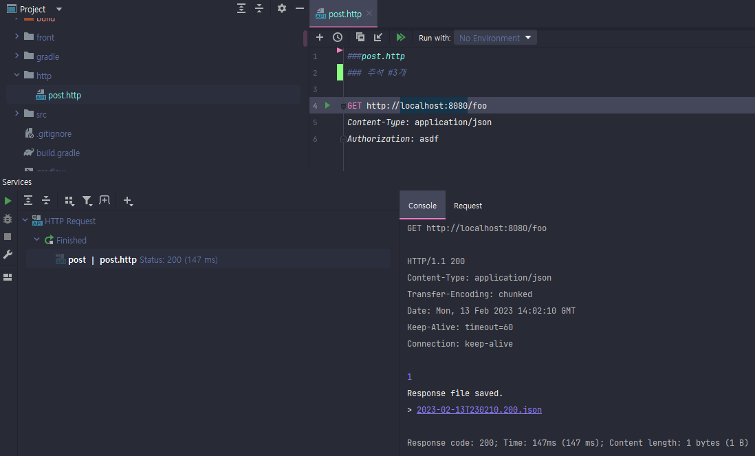 이 방식은 쉽게 Http 요청을 테스트 할 수 있을 뿐만 아니라 파일이 소스 내에 포함되기 때문에 형상관리에도 용이하다.