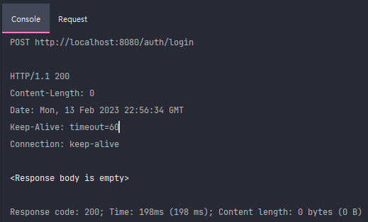요청 발송. 200. Response Body is empty