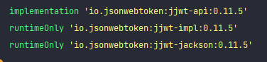 runtimeOnly 'io.jsonwebtoken:jjwt-impl:0.11.5'