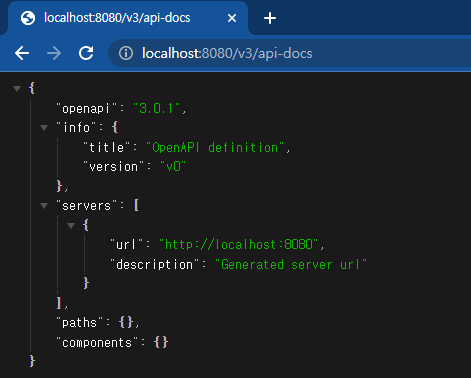 접근 경로를 변경하지 않았을 경우 => http://localhost:8080/v3/api-docs
