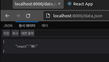 브라우저에서 locahost:8000/data.json에 접근하였을 경우 위와 같이 표시된다.