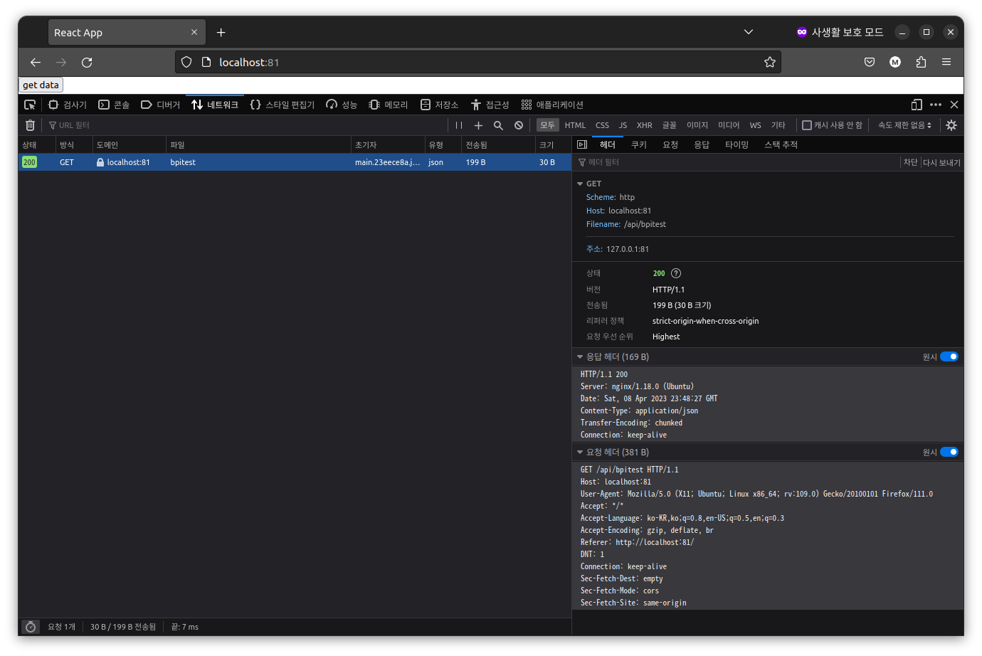 리액트 앱과 백엔드 서버 연동 테스트3 (+ Nginx) 본문