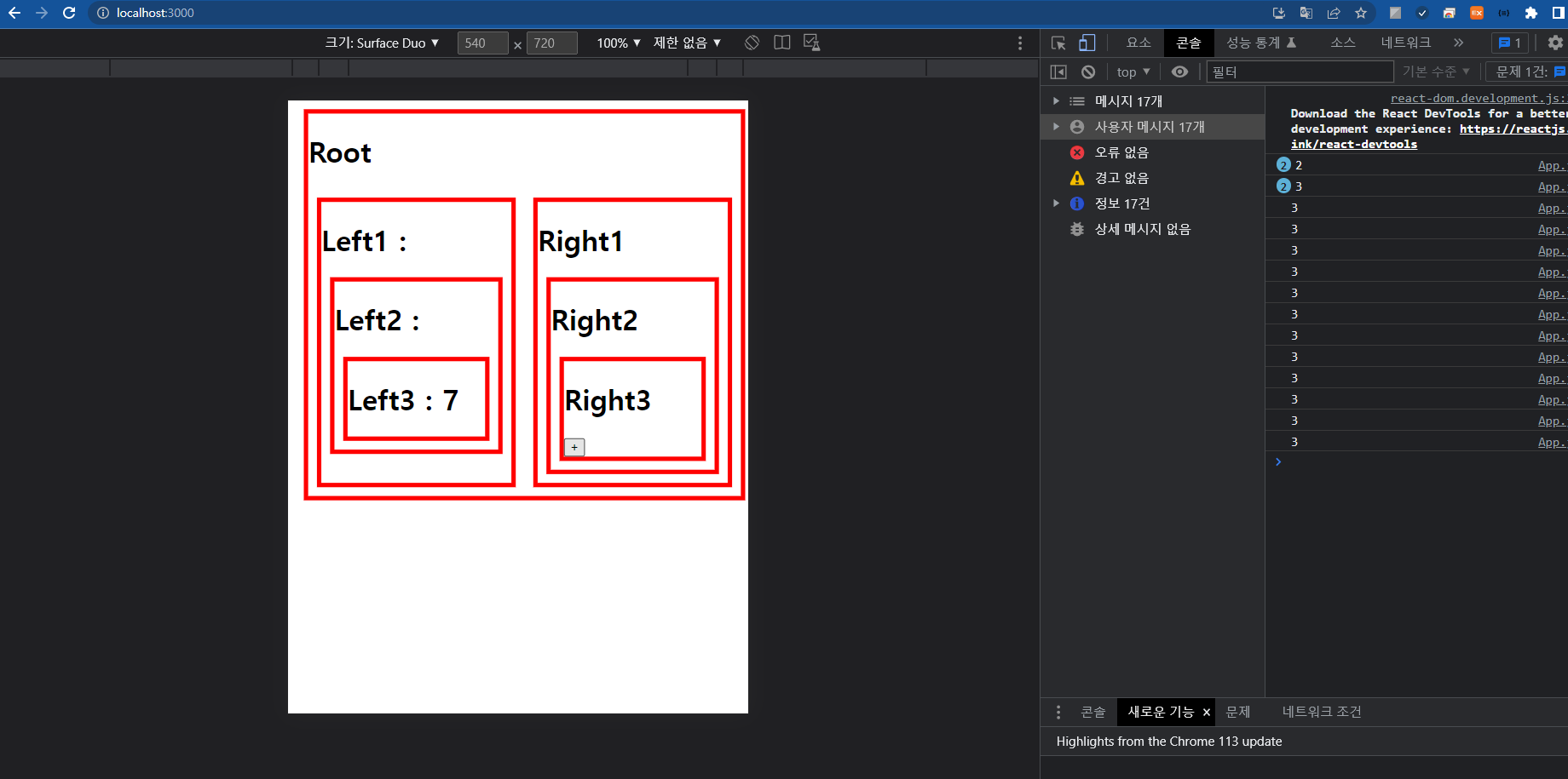 다시 Left로 내려가는 데 1억개, 총 2억개의 컴포넌트가 부모자식 관계로 이어져 변경되어야 한다.