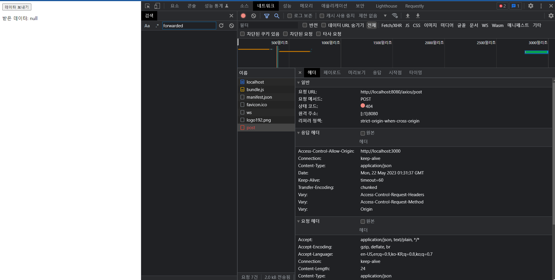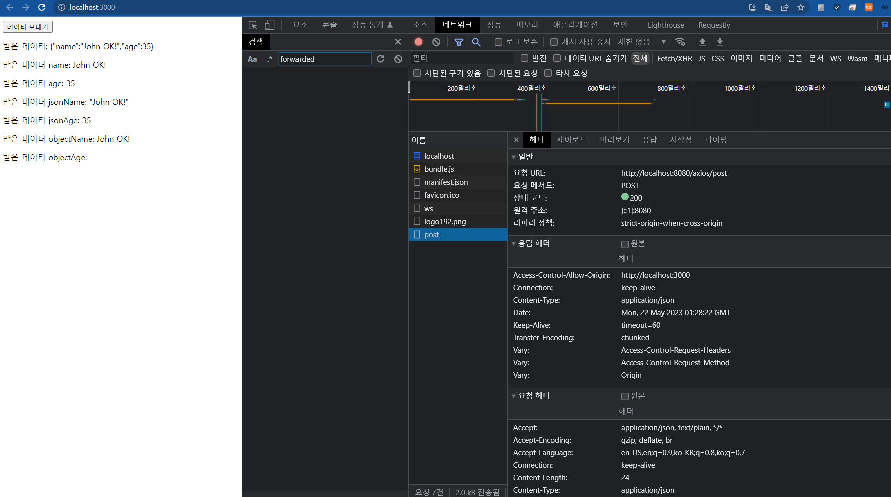 3. React에서 axios 사용하기(POST) 테스트 본문