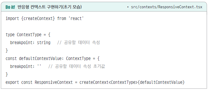 다음 코드는 useContext 훅을 사용하는 useResponsive 커스텀 훅을 구현한 예.