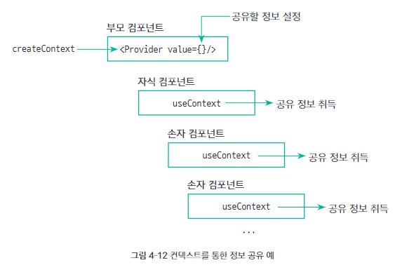 - 컨텍스트는 리액트가 제공하는 가장 막강한 기능