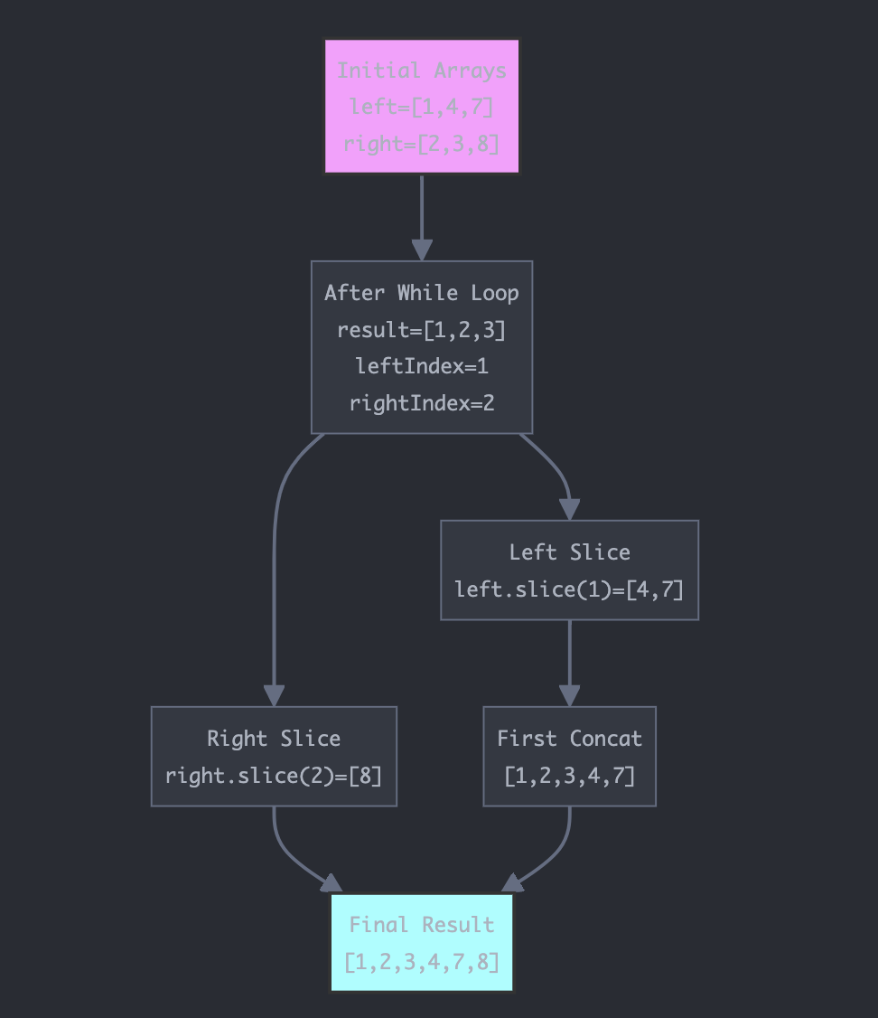 result.concat(left.slice(leftIndex)).concat(right.slice(rightIndex))