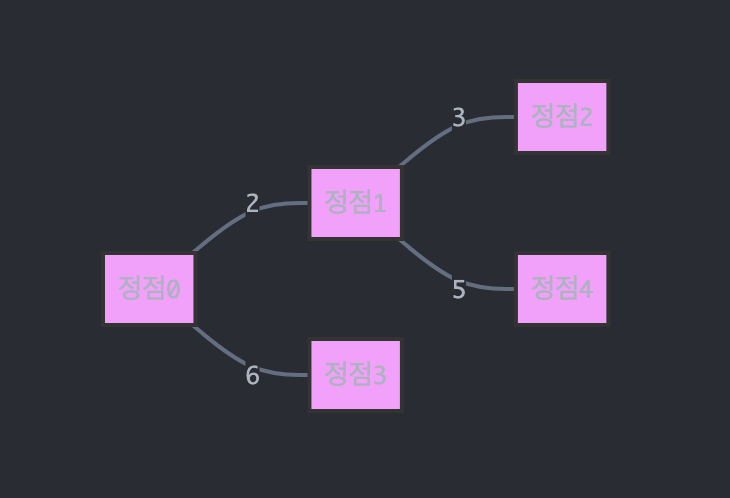 [0, 2, 0, 6, 0], // 0번 정점의 간선들