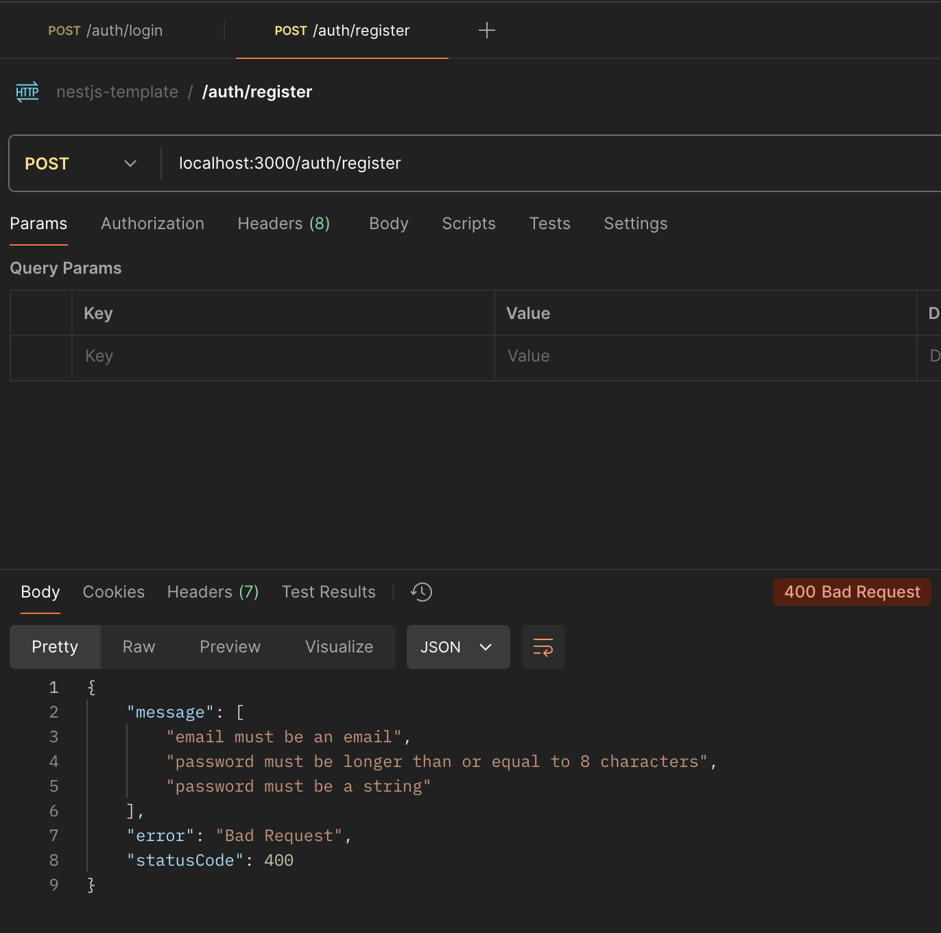 if (loginDto.password.length < 8) throw new BadRequestException();