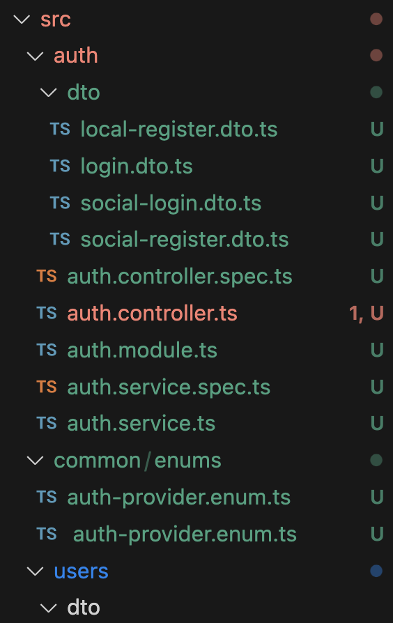 위처럼 src/users라는 디렉토리가 생기고, 유저 생성/수정과 관련된 파일들이 생성되었다.