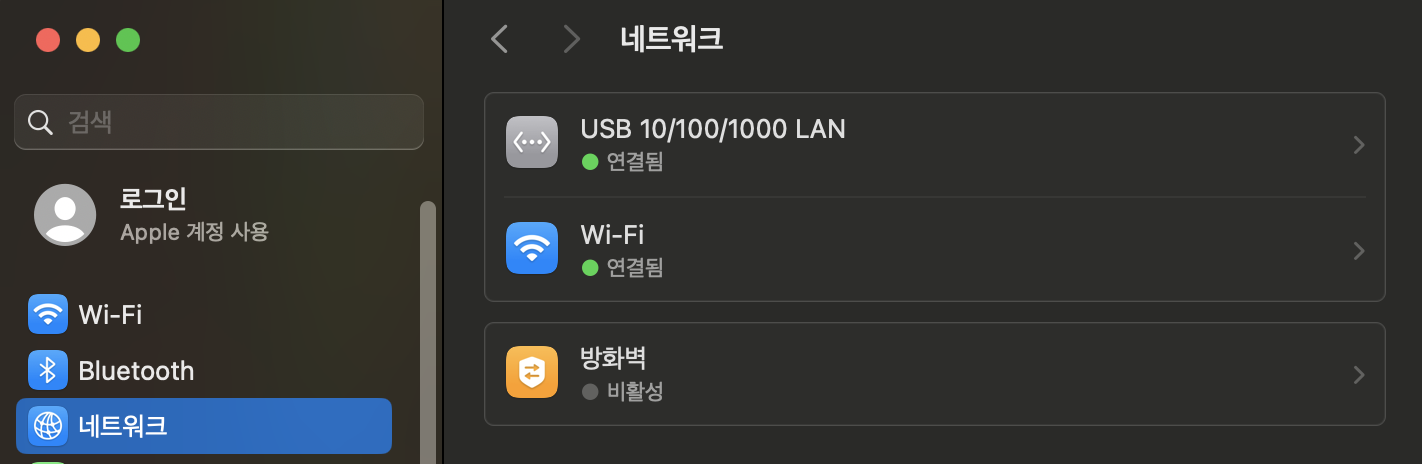 이로써 맥북의 네트워크 설정은 끝났다.